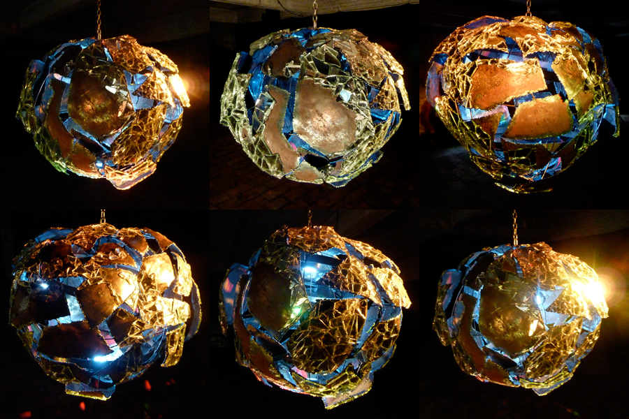 bris de miroirs, chaîne, moteur, spots, leds), diamètre : 70cm, 2013.