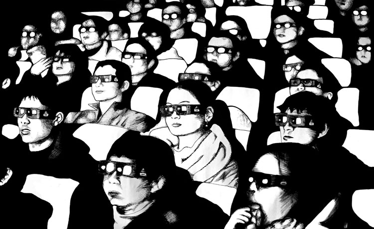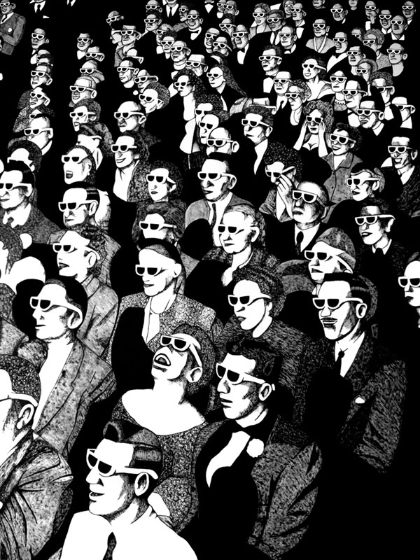 "Les Spectateurs n°1", encre de chine sur papier, 1m10 X 1m45, 2010.