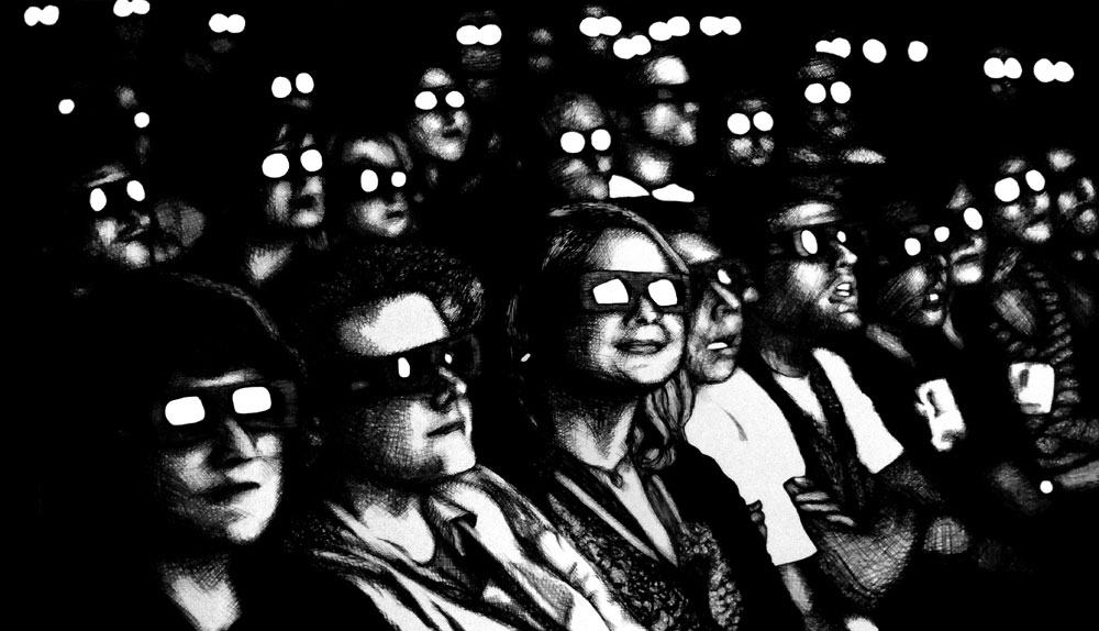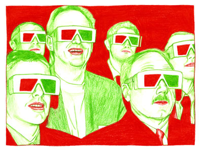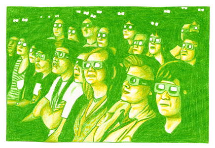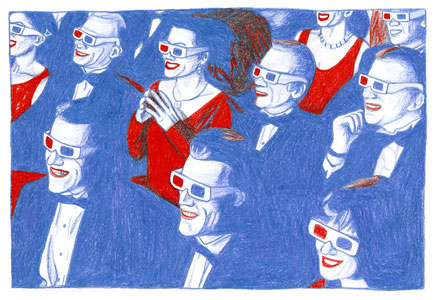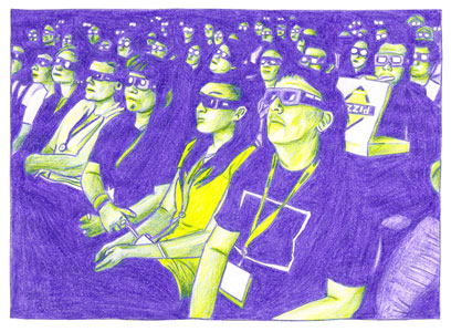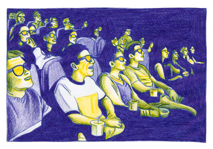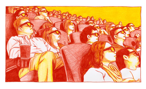 "Les Spectateurs", crayons de couleurs sur papier A4, série de 6 dessins, 2010.