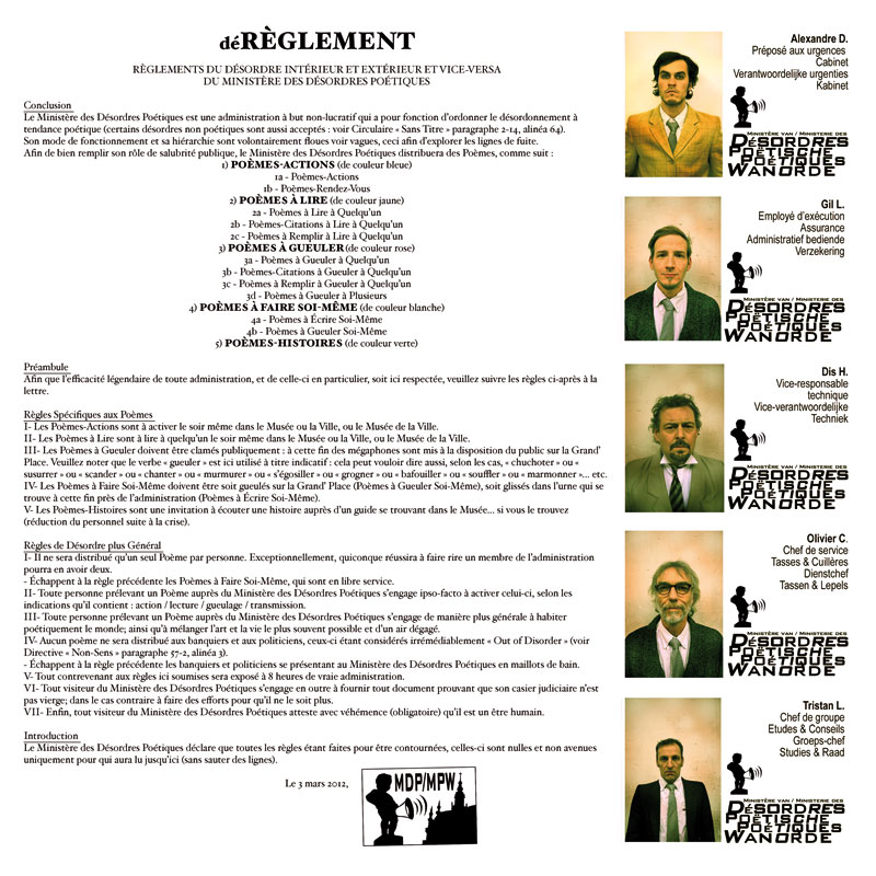 "Ministère des Désordres Poétiques", performance collective et participative,